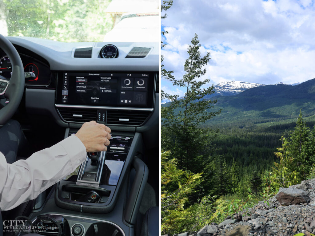 Ending the day cruising on the sea to sky highway, the vehicle’s 8-speed tiptronic S transmission shows off its agility and noise reduction capabilities, allowing me to take in the views of a deep blue lake and lush forests on either side of me before returning to the hotel.